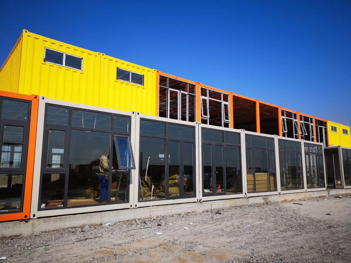 雨施捷王總介紹到,此項目為集裝箱房屋通體采用鋼結構為主體材料生產而成,具有較好 的抗風性抗震性,適應地勢地形環境能力強。