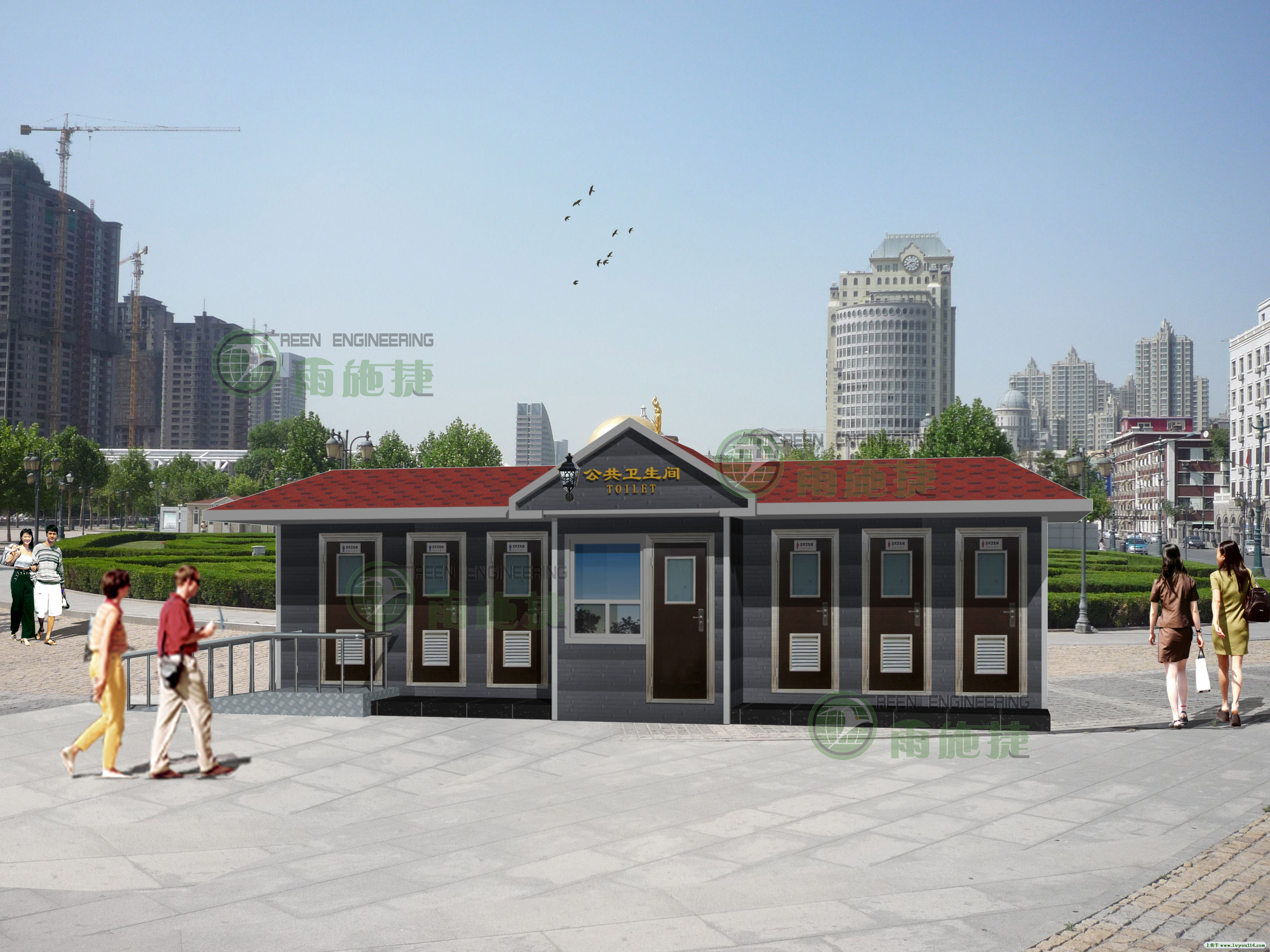從移動廁所的外觀材料上來看,移動廁所采用的是環保材料制作的。它的材料是采用了沒無害的環保材料,鋼結構金屬雕花板等等。這種移動廁所和傳統的廁所是不一樣的,傳統廁所采用的是鋼筋水泥的建造建造過程當中會造成很多污染,就算是不使用以后拆除也會造成大量的建筑垃圾,移動廁所修建起來,不會造成任何的污染,而且節約了大量的人力物力和財力。