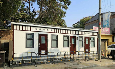 此項目為居民區老舊旱廁拆除重建水沖式廁所工程,因涉及環保及民生問題所以工期緊,任務重。此次雨施捷公司設計施工的裝配式廁所,根據現場情況百分之70的構件都在車間完成,現場主體安裝大大縮短。輕鋼裝配式廁所,建設公廁就像搭積木,把各種預制好的建筑構件運到現場,主體拼裝、內部裝飾一氣呵成。因此受天氣、材料的影響很小,相比傳統混凝土結構,建造時間大大縮短,所以有能力在短工期內保質保量的完成本次施工任務。