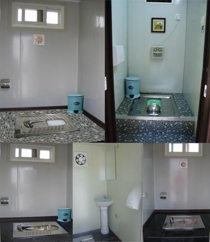 標準配置:不銹鋼蹲便器、防滑火燒板地面、化妝鏡、衣帽鉤、手紙盒、廢紙簍、照明燈、換氣扇、指示牌等