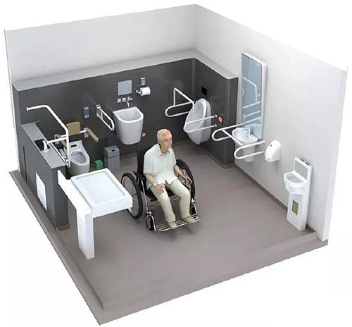現在的公共衛生間不僅是一個可以提供人們上廁所的空間,現在又給它賦予了更多的功能,如為嬰兒更換尿不濕、換衣,整理容妝。設計行李架掛衣的空間,專為行動不便的人士準備的隱障礙間等等,更多功能空間的需求,對于空間的設計也提出了更多的要求。